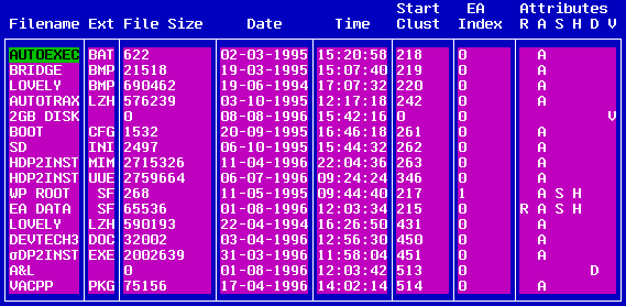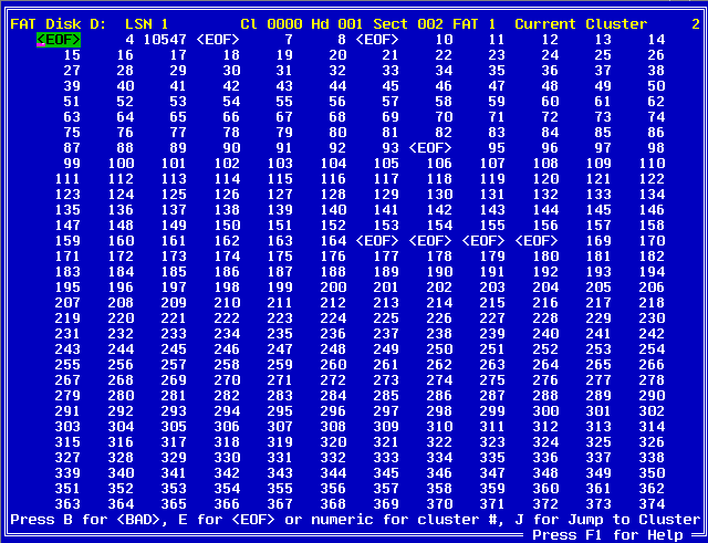 Note : The F12 key can be used to jump to the Start Cluster of the currently selected directory entry.
