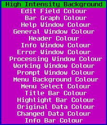 This option allows you to edit the colour of the bar graph as used in text windowed applications. This colour will not effect applications such as SPACE.