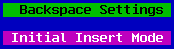The first option, Backspace Settings, allows you to set whether the backspace key is destructive or not. A non destructive backspace acts as a left arrow, no characters are deleted. The default for this option is FALSE, indicating that the backspace key is not destructive.