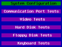 DIAG is a diagnostic tool to test and report on features of your OS/2 system. It uses a simple, nested menu system to navigate through the tests you wish to perform. When DIAG is first started you will see the following menu centred in the middle of the screen: