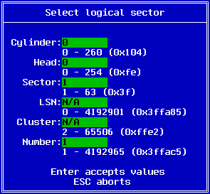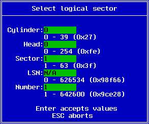 If disk has passed all of these checks, DiskEdit will now prompt you with the sector selection dialog box similar to one of these: