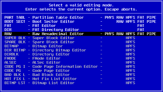 This is for the RAW, HPFS and PIPE disk editing modules: