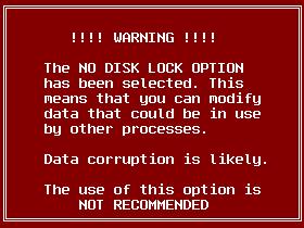 Warning : Use of this option is NOT recommended. You could modify data which belongs to a file that is otherwise locked. Modifying data which is in use by another process without that process's knowledge may have disastrous effects.
