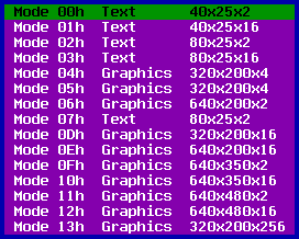 For graphics modes, colour bars are drawn. A bar of each colour is drawn. You should see colour bars of equal width and of equal colour intensity.
