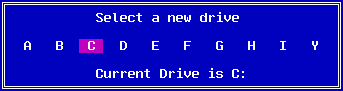 Use the left or right arrow keys to select the required drive. Press Enter to choose that drive. Alternatively, you can simply press the desired drive letter. Pressing ESC will cause the program to abort and no drive change will occur.