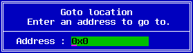 Here you may enter a direct address in hexadecimal. This is particularly useful if you want to move to the middle of a very large file.