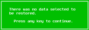 Press F10 to write the data to the disk. RestPart will then exit, and the system should then be rebooted in order for the changes to take effect. If no elements were selected for restoration, then you will be prompted by this dialog box: